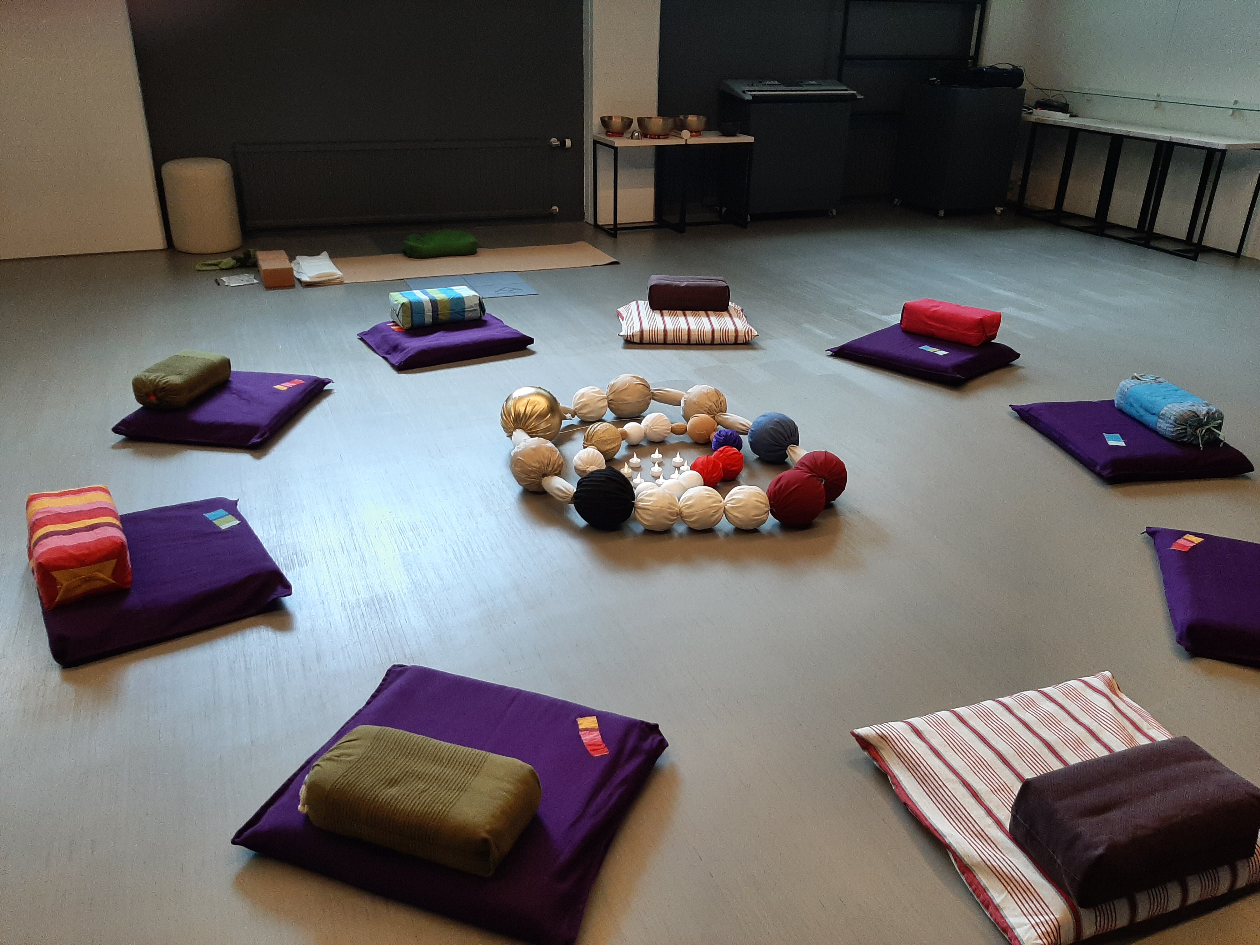 Edellinen kuva Seuraava kuva Posion Kirikeskuksen joogasali Kirikeskuksen monitoimitila muotoutuu erinomaiseksi joogasaliksi 20 hengelle.