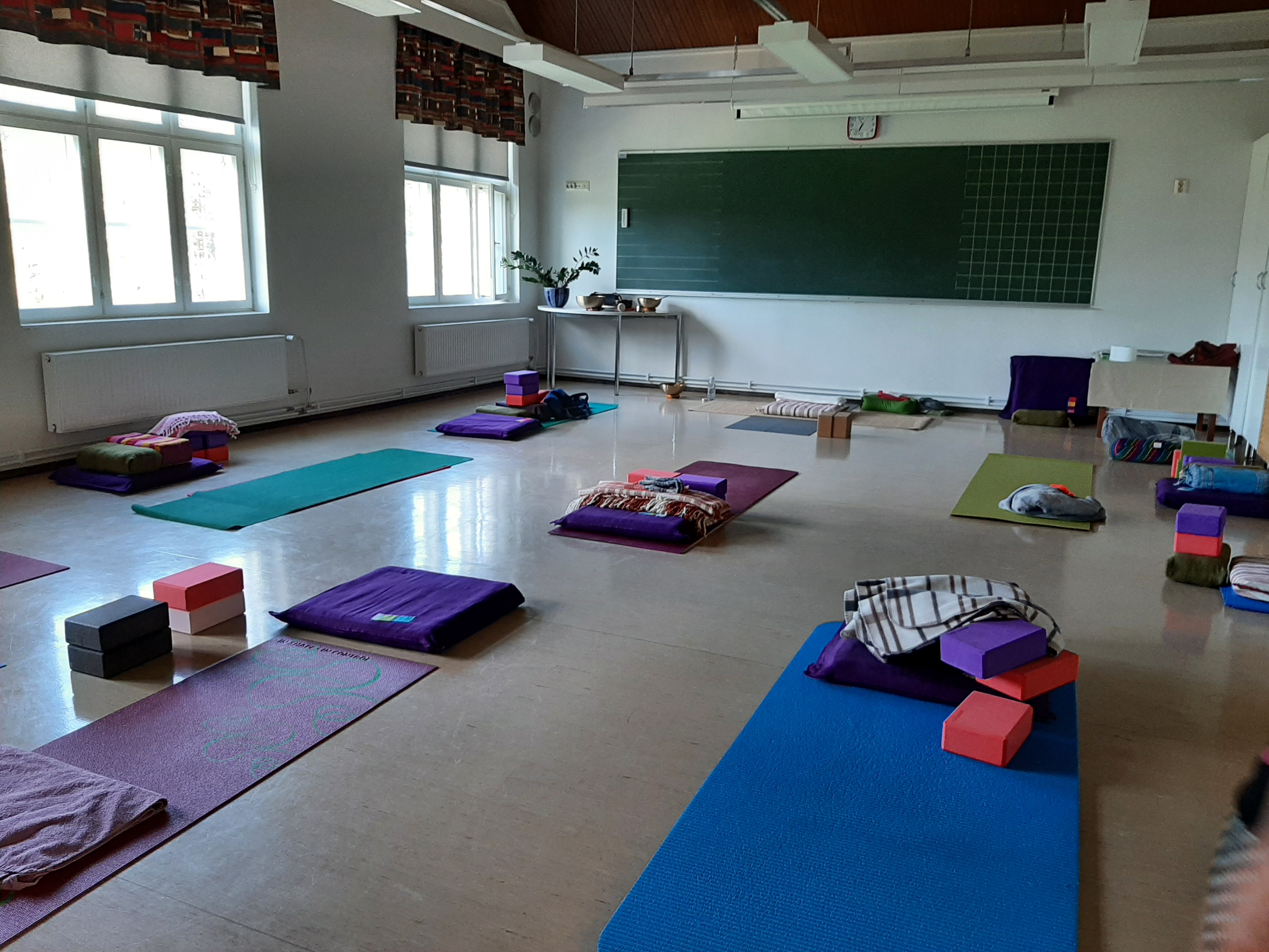 Joogasali sijaitsee kyläkartanon yläkerrassa.