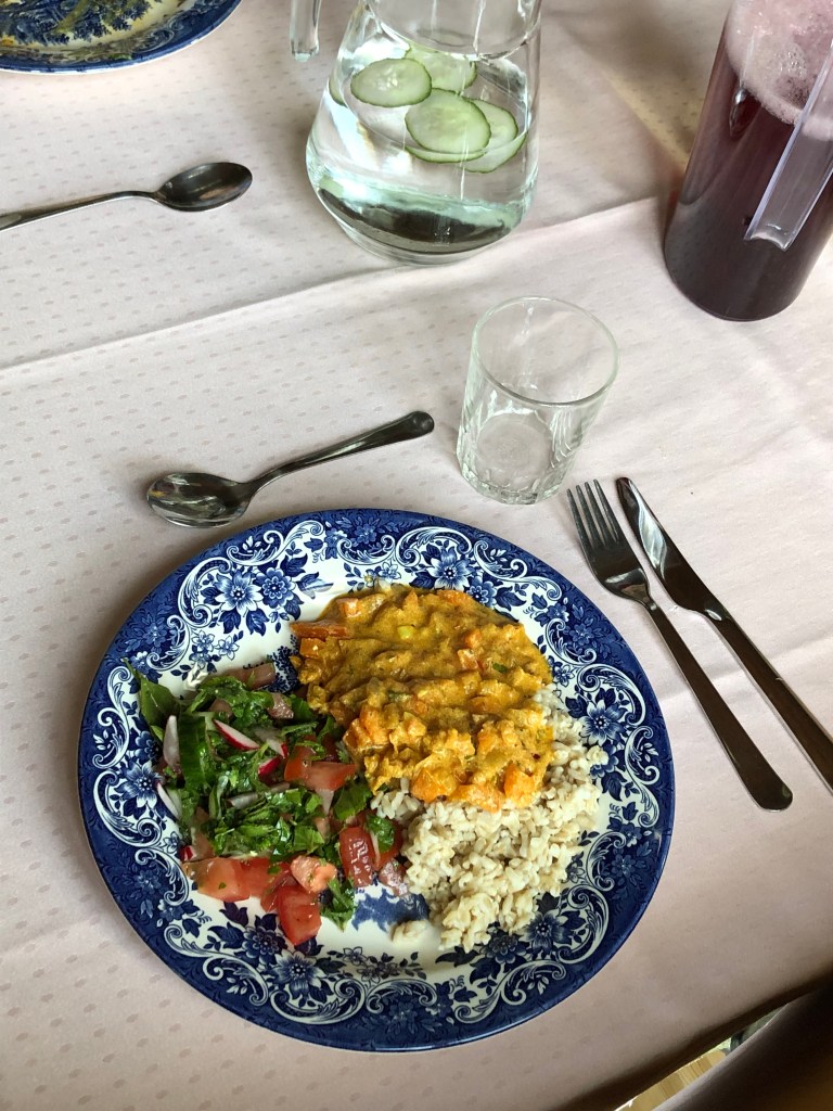 Tapionniemen kyläseuran vapaaehtoiset aktiivit luovat meille ihanat puitteet nauttia retriitistä – kaunis ja hyvällä maulla entisöity kyläkoulu ympäristöineen toimivat retriitin keskuksena. Ammattitasoinen keittiö emäntineen tuottaa meille mahdollisimman paljon lähiraaka-aineista tuotettua vihannespainotteista, herkullista ruokaa.